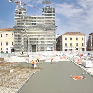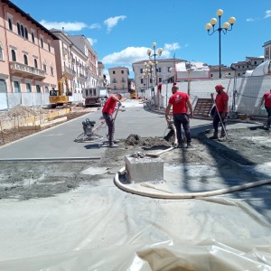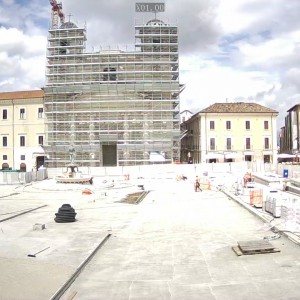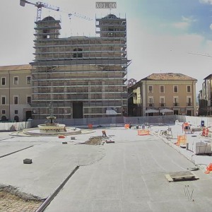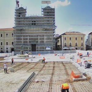 Trattasi della Piazza principale della città di L’Aquila, individuata nel vigente piano regolatore come zona A del Centro Storico, sottoposta a nessun vincolo di PRG né vincoli di tipo sovracomunale. L’intervento è conseguente alla realizzazione dei sotto servizi nel centro della città e ha lo scopo diripristinare le pavimentazioni lapidee presenti nel centro storico dell’Aquila, attraverso la sostituzione della pavimentazione esistente sia all’interno dell’ovale centrale, sia nelle strade circostanti. Inoltre si prevede la realizzazione dell’impianto di illuminazione pubblica, l’inserimento di elementi di arredo urbano, di verde pubblico, la pensilina per il collegamento di Piazza Duomo con il Terminal “Lorenzo Natali” e la predisposizione degli impianti a servizio del mercato cittadino e di eventi.